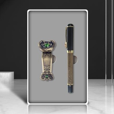 礼品尺寸:64*25*15mm,金属笔尺寸:140*14mm