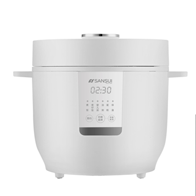 触控操作,四位数码液晶显示,底部发热盘加热,顶置微压阀,感温不溢锅,纯白色简约日式风格