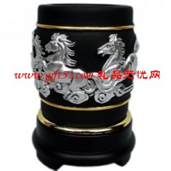 金乌炭雕马到成功笔筒定制,商务笔筒订购